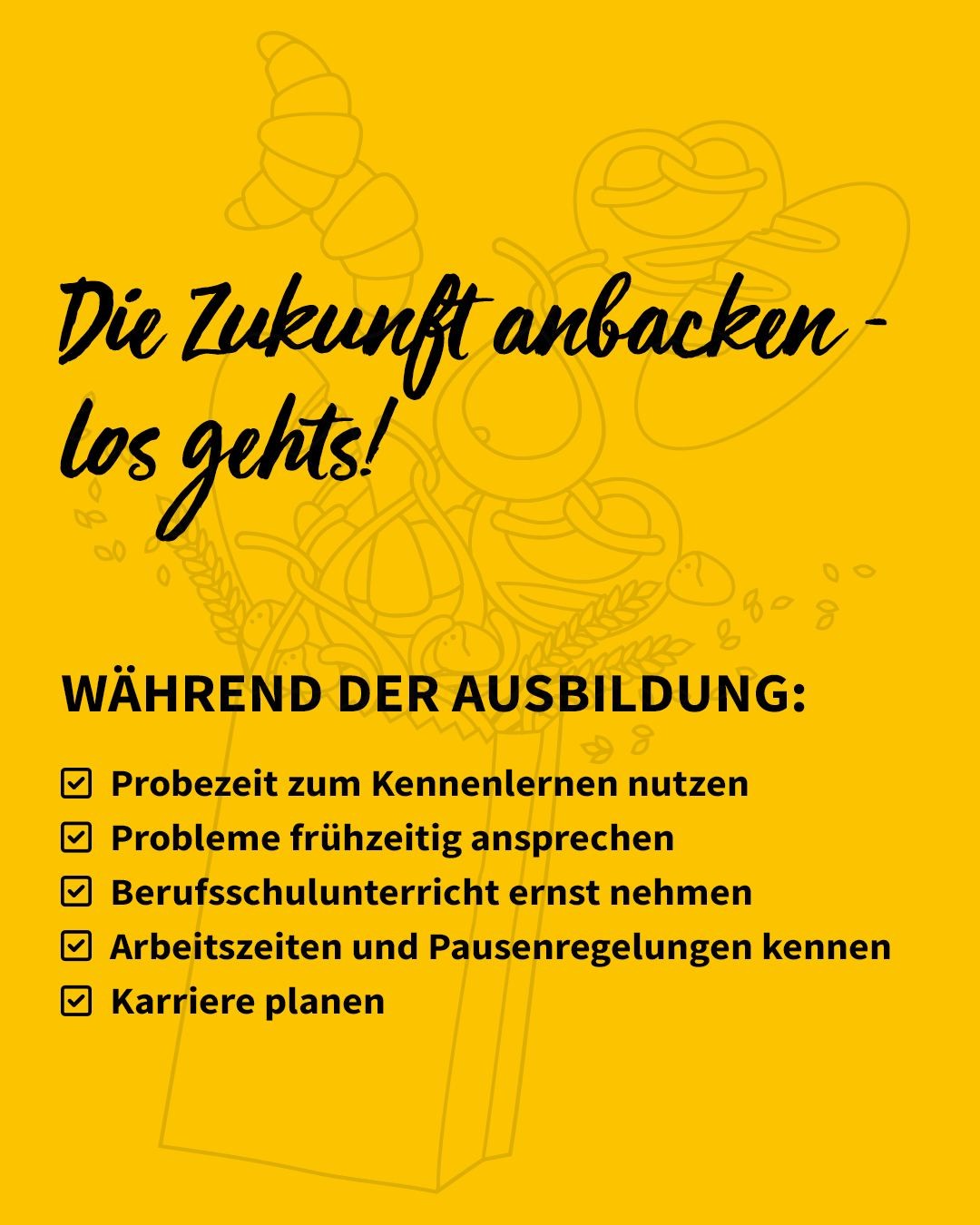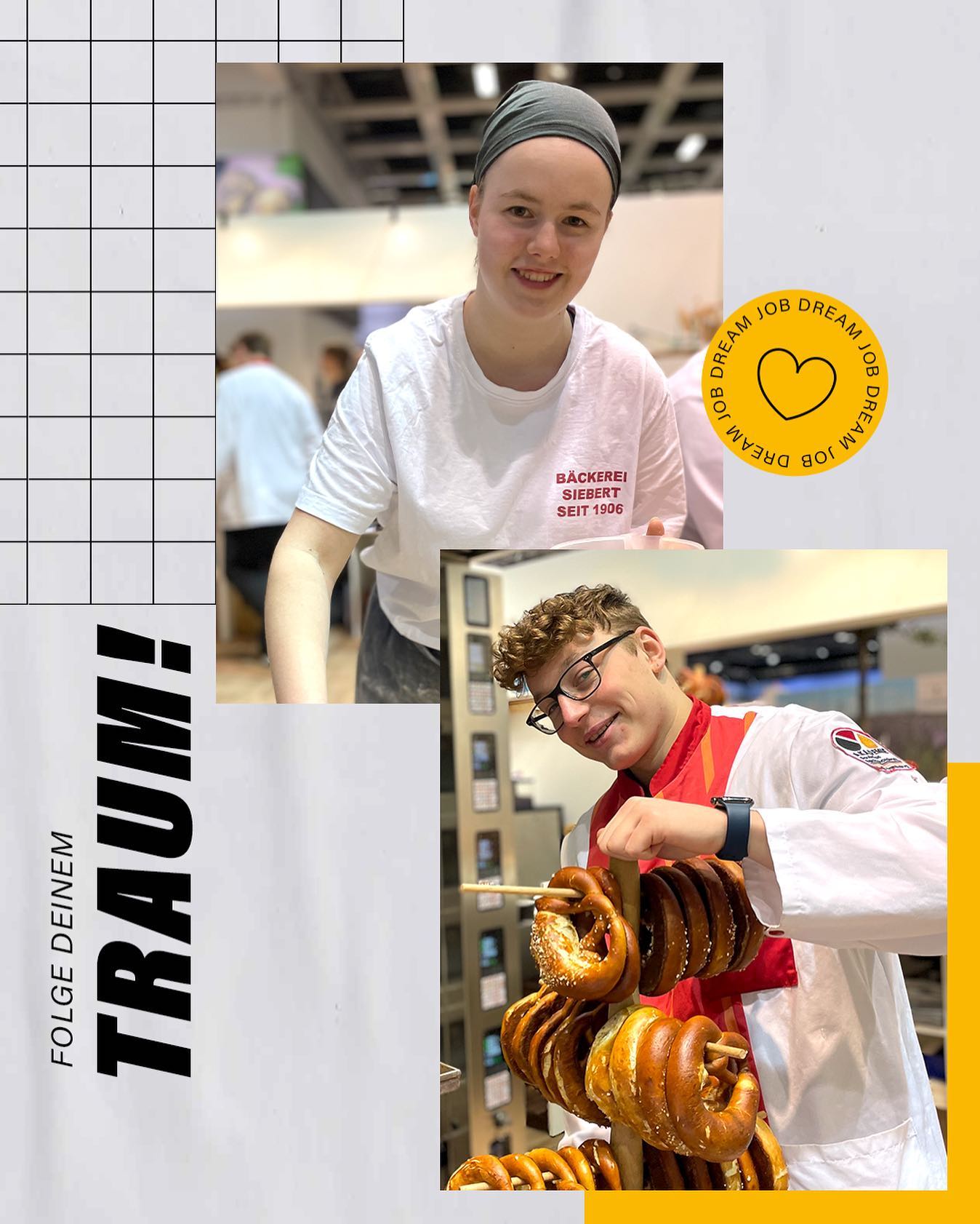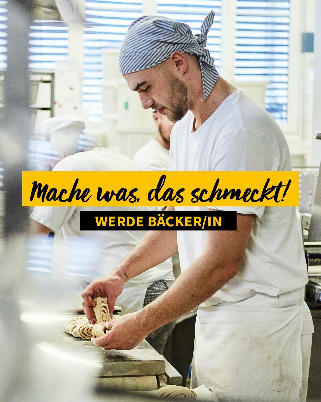 Das Bäckerhandwerk ist eine große Gemeinschaft mit knapp 9.300 Betrieben und 235.000 Beschäftigten in ganz Deutschland. Davon sind ca. 10.000 Auszubildende. Und jeden Tag gibt es im Bäckerhandwerk Neues zu entdecken. Tausch dich auf unseren Social-Media-Plattformen aus, schau dir die neusten Trends an oder lass dich einfach inspirieren.